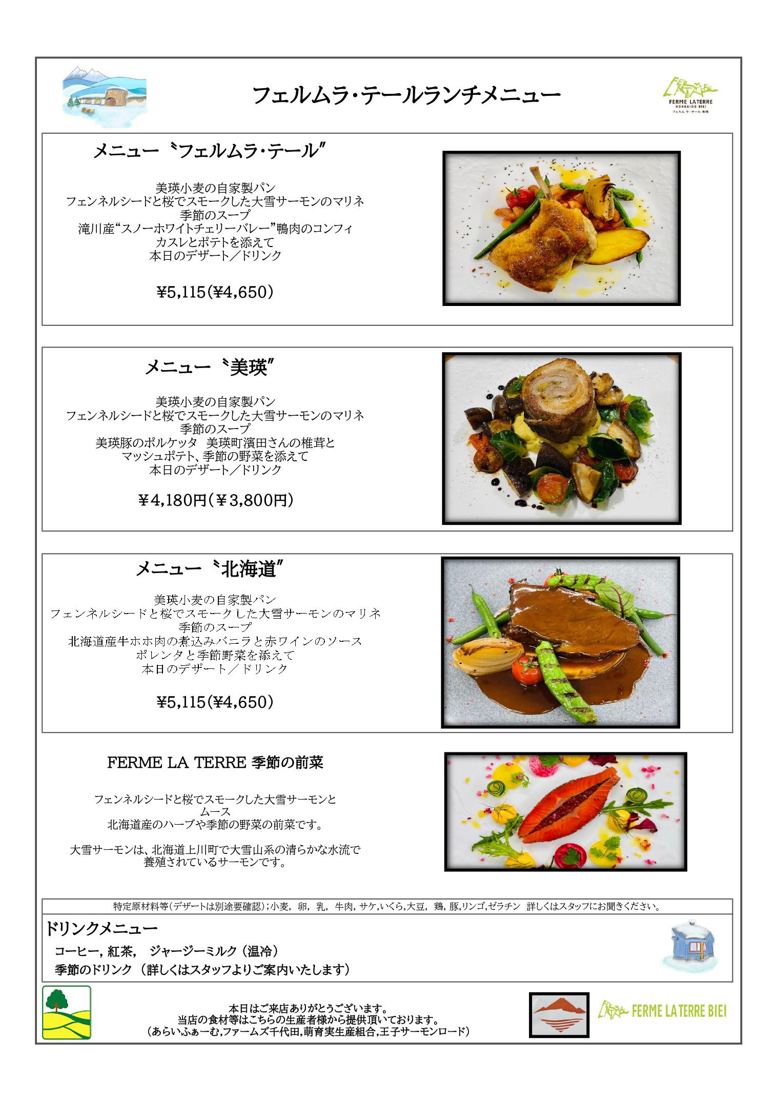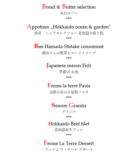 フェルムラ・テール美瑛が運営する宿泊施設Villa Bieiをご利用のお客様のための特別ディナーコースをご用意いたします。本体価格3,000円(税込み価格3,300円)