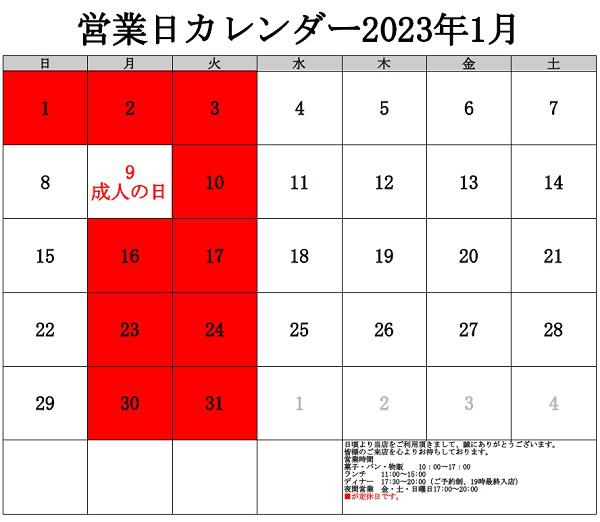 2023年1月、2月の定休日、営業時間に関しましてお知らせいたします。